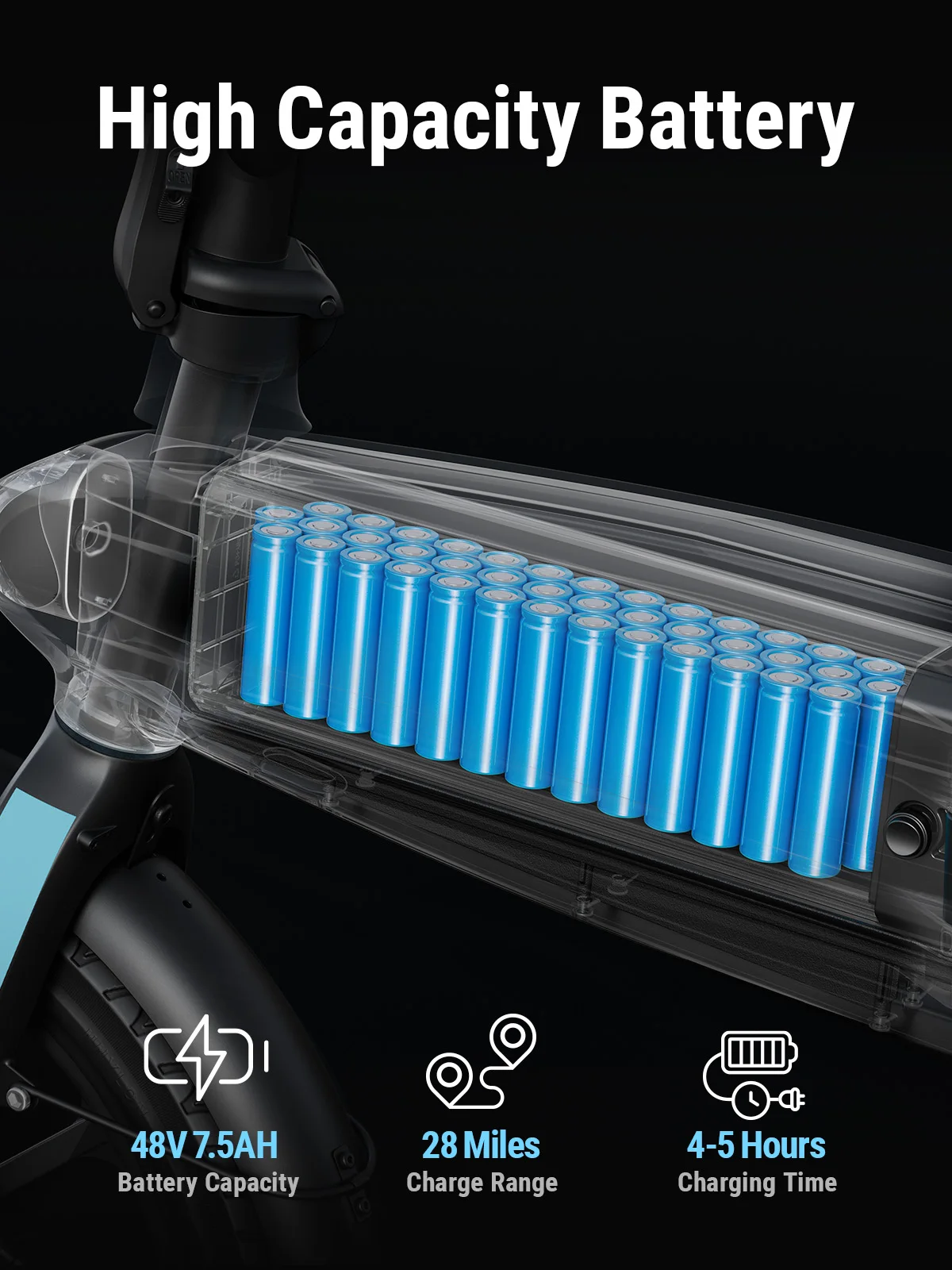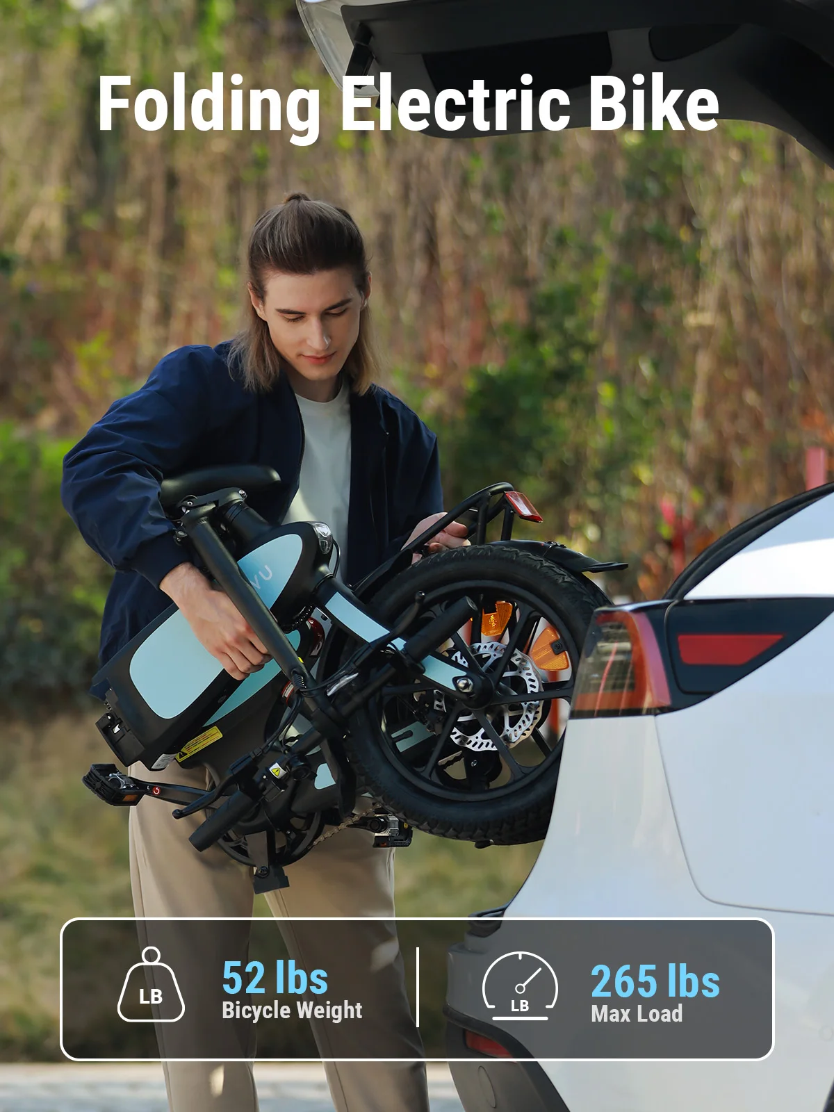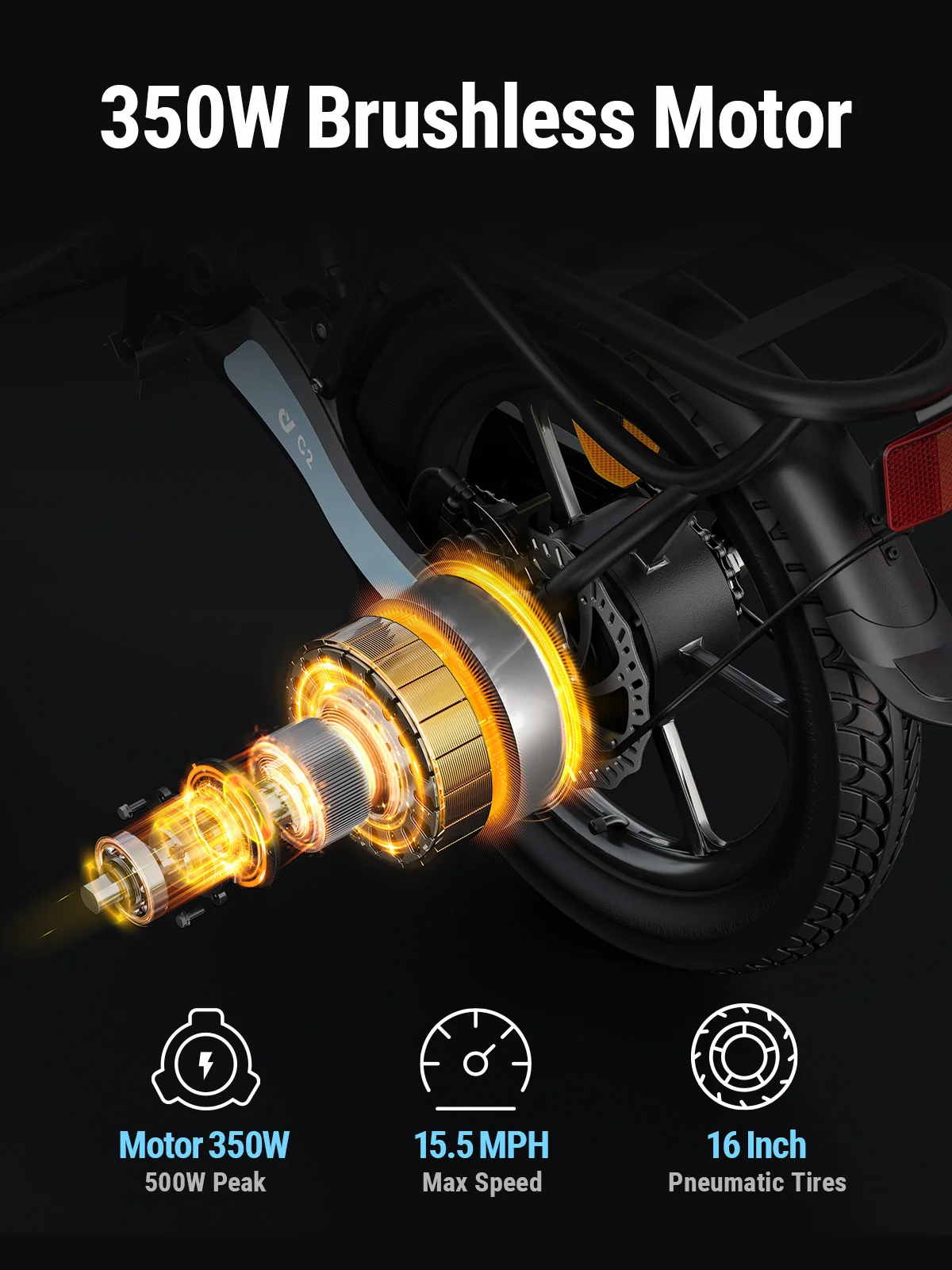 14-Inch Electric Folding E Bike 350W Rear Hub Motor 48V 7.5Ah Lithium Battery Disc Brake System Tube Tire Electric Bike