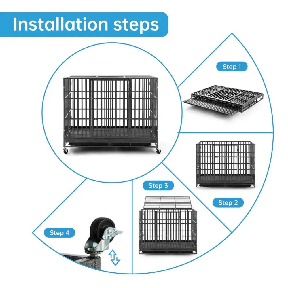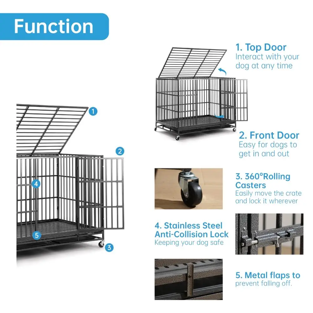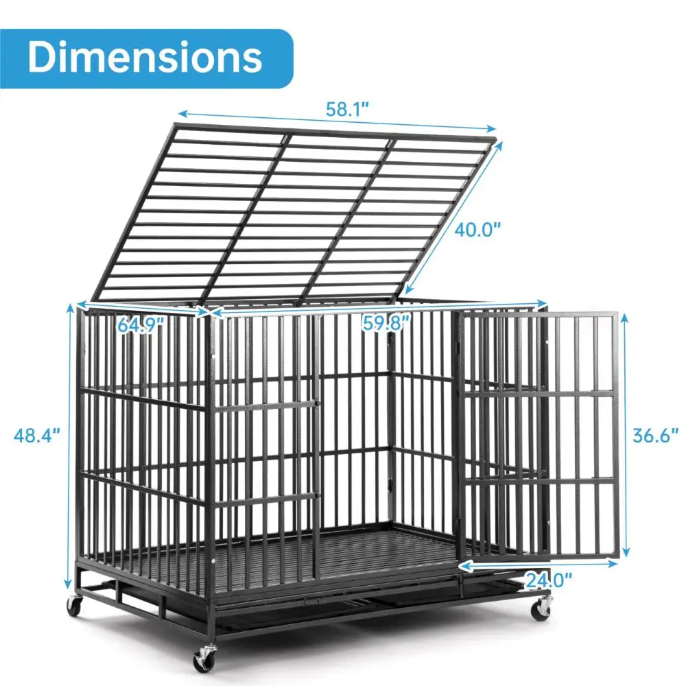 60 Inch Heavy Duty Indestructible Dog Crate, Escape Proof Large Dog Cage Kennel for High Anxiety, Extra Large Dog Crate