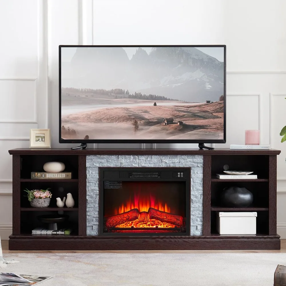 70 Inch Fireplace TV Stand for 75 Inch TV, Entertainment Center with 18" Electric Fireplace, Media Console for Living Room Bedro