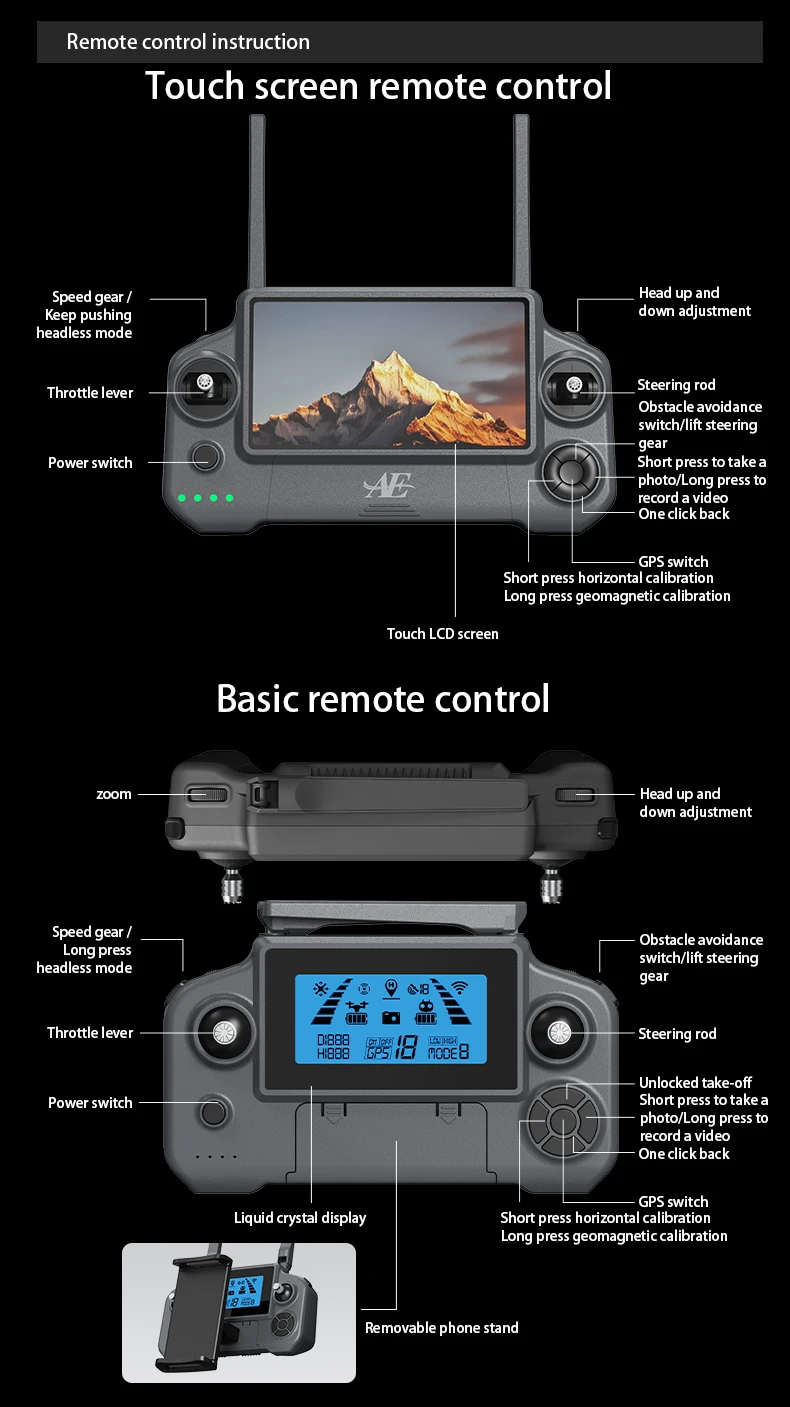 New AE30 Screen Control Drone 3-Axis Brushless Enhanced Pan Tilt+EIS Electronic Stable HD Camera Laser Obstacle Avoidance Dron